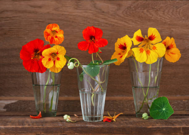 Nasturtiums offer cheerful orange, red, and yellow blossoms along with edible leaves and flowers that bring a peppery zing to salads. They trail beautifully over basket edges.