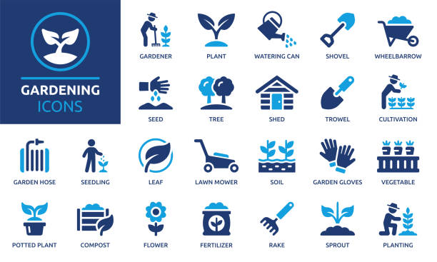 Containing plant, gardener, sprout, leaf, planting, seedling, shovel, watering can, rake, cultivation and more. Solid vector icons collection.